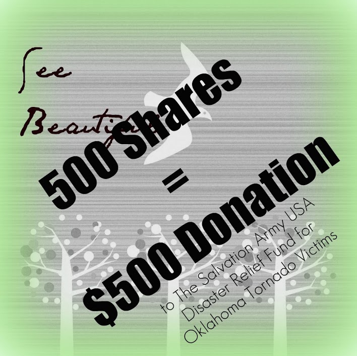 For every share (from our Facebook Page) or shared "comment of encouragement" of this post from See Beautiful's page we will "share" your encouragement in the form of a $1 donation per share (up to $500) to The Salvation Army USA!